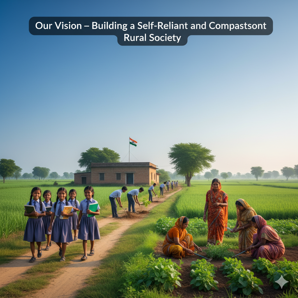 To build a self-reliant, just, and compassionate rural society where every individual—especially the poor, marginalized, and women—has access to education, livelihood, health, and dignity. We envision empowered villages that nurture equality, environmental harmony, and sustainable development rooted in Gandhian values of truth, peace, and service.