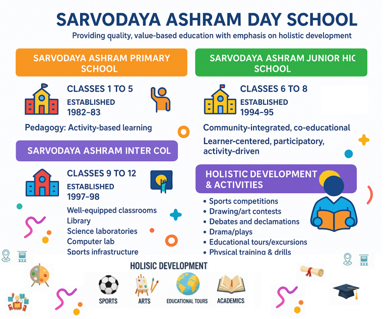 Our Interventions Education Current Sarvodaya Ashram & IIMPACT: Girl Child Education Program in UP Sarvodaya Ashram Residential School: A Profile in Empowerment Sarvodaya Ashram Day School: A Profile in Nurturing Education and Values Education Past Breaking the Chains of Child Labour: Sarvodaya Ashram’s Education Model in Hardoi Pehchaan Project: Re-Engaging and Empowering Adolescent Girls for Secondary Education Access Udaan Project: Empowering Adolescent Girls Through Accelerated Education and Mainstreaming The TARA Akshar Project: Empowering Communities Through Functional Literacy Sarvodaya Ashram’s Adult Literacy Program: A Transformative Partnership with HCL Foundation Health Current Sarvodaya Ashram: Targeted Intervention Project in Hardoi, Uttar Pradesh Health Past Sarvodaya Ashram and CARE India: Transforming Community Health Through the Integrated Nutrition and Health Program (INHP) Sure Start: A Comprehensive Maternal and Neonatal Healthcare Program by Sarvodaya Ashram Khushhali Program: Fostering Health and Hygiene in Hardoi Sarvodaya Ashram: A Vanguard in Child Protection Through the Childline Project The Arogya Sakhi Program: A Milestone in Community Healthcare