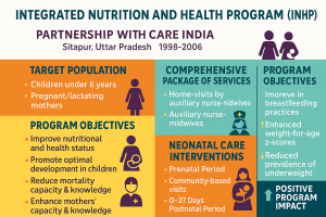 CARE India’s INHP was a multi-stakeholder initiative, forged through a robust partnership involving CARE India itself, various departments of the Indian government (specifically the Ministry of Women and Child Development and the Ministry of Health and Family Welfare), and local non-governmental organizations, including Sarvodaya Ashram.