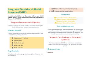 Target Population: The INHP meticulously targeted children aged 0-6 years and expectant/nursing mothers, recognizing these groups as requiring focused attention due to their heightened vulnerability to nutritional deficiencies and health complications.