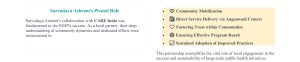 Sarvodaya Ashram’s collaboration with CARE India was fundamental to the successful implementation and achievement of the desired outcomes of the Integrated Nutrition and Health Program. As a local partner, Sarvodaya Ashram played a crucial role in community mobilization, direct service delivery through Anganwadi centers, and fostering trust within the communities. Their deep understanding of local dynamics and their dedicated efforts were instrumental in ensuring the program’s effective reach and the sustained adoption of improved health and nutrition practices among the vulnerable populations of Sitapur district. This partnership exemplifies how local engagement is vital for the success and sustainability of large-scale public health initiatives.