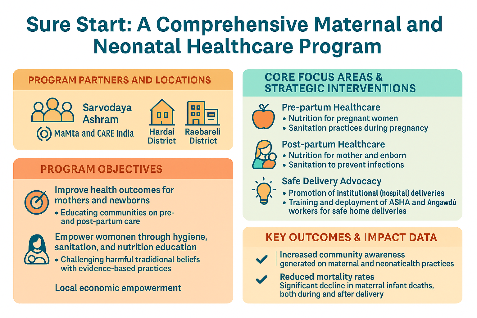 Sarvodaya Ashram, in a vital partnership with Mamta and CARE India, successfully implemented a crucial Maternal and Neonatal Healthcare Program. This initiative was strategically executed across two key districts: Hardoi and Raebareli, demonstrating a targeted approach to community health improvement.